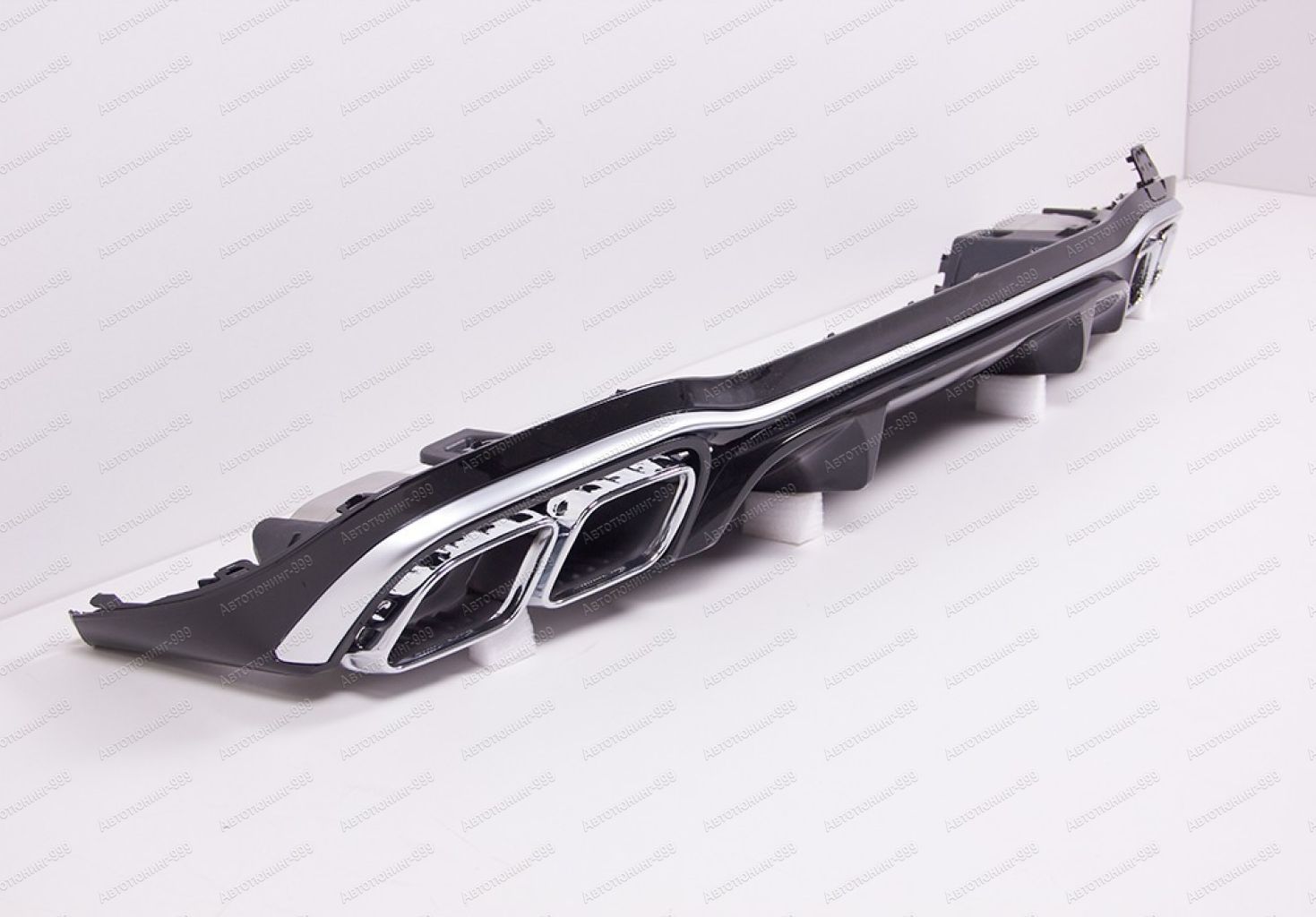 Диффузор с насадками 63 AMG на Mercedes E-class изготовлены из высококачественных материалов и устанавливается в штатные места без переделок и доработок. В комплект входит: диффузор заднего бампера окрашенный в черный цвет с серебристой вставкой, кронштейны насадок, хромированные насадки на глушитель с гравировкой AMG.