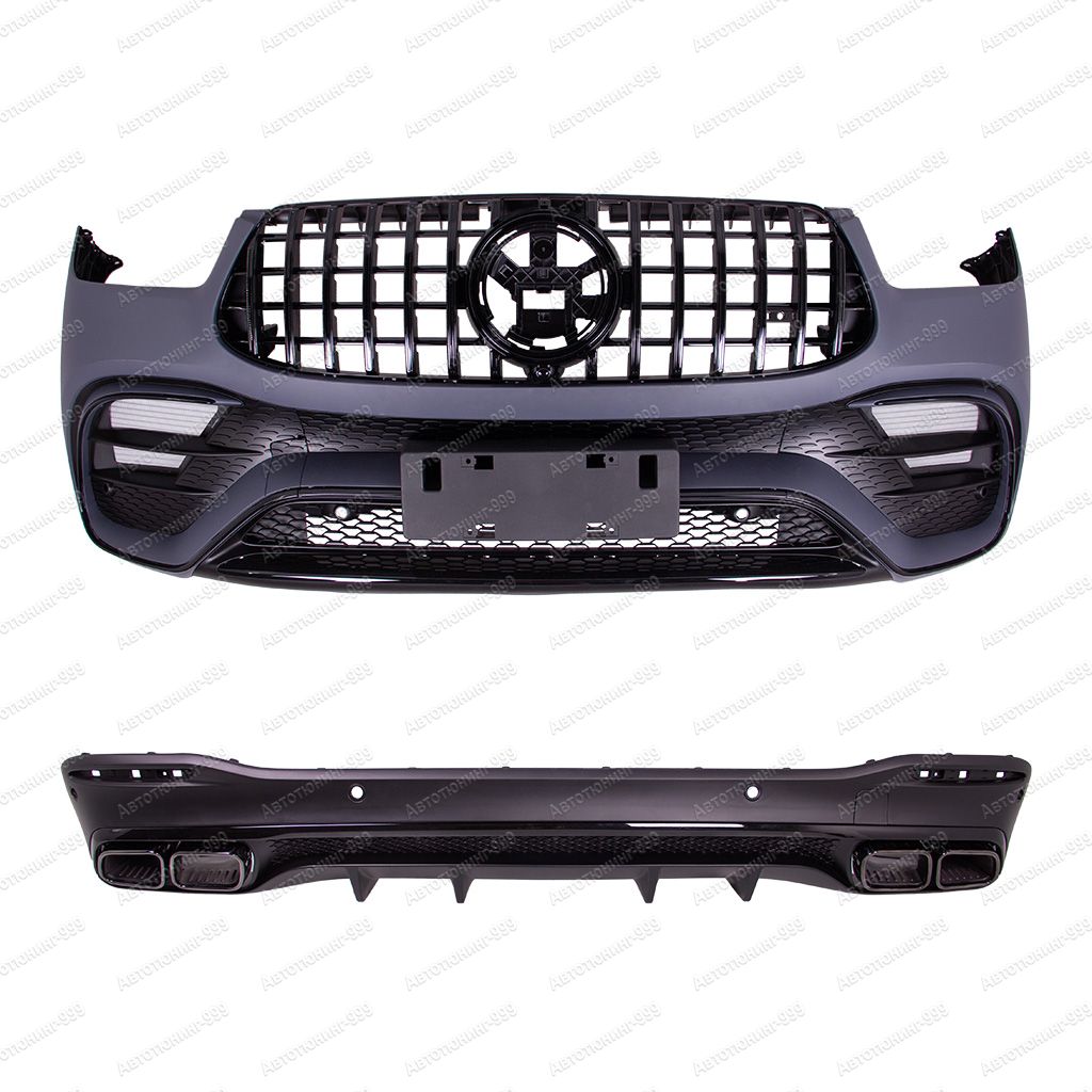 Обвес 63s AMG на Mercedes GLE V 167 изготовлен из высококачественных материалов и устанавливается в штатные места без переделок и доработок. В комплект обвеса входит: передний бампер в сборе с черной решеткой, задний диффузор с черной полосой и черными насадками, комплект крепежа.