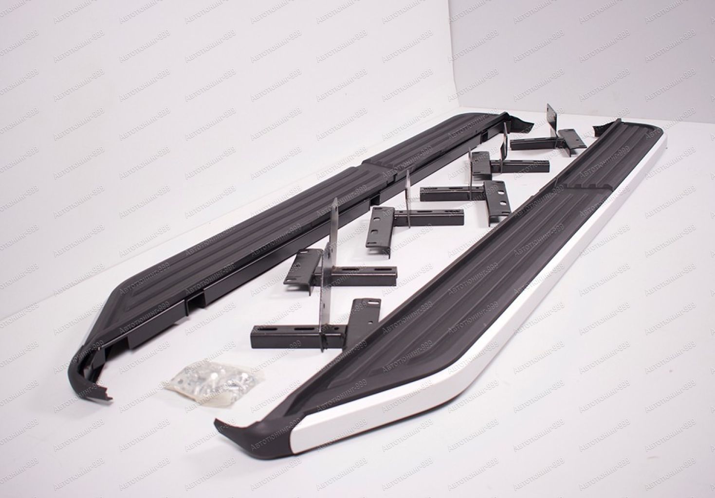 Пороги для внедорожников Land Rover Discovery. Поверхность порога выполнена из противоскользящего пластика и торцевых накладок из алюминия, каркас порога и кронштейны стальные. Пороги используются для удобной посадки-высадки, защищают штатные пороги внедорожника от грязи. Являются неотъемлемым аксессуаром для тюнинга автомобиля, придадут Вашему внедорожнику индивидуальность и элегантный внешний вид.